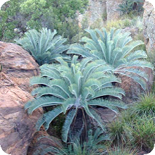 Olifants River CycadEncephalartos lanatus, also known as the Olifants River Cycad or the Woolly Cycad, occurs in the upper catchment area of the Olifants River in the Middelburg, Witbank and Bronkhorstspruit districts of the Gauteng and Mpumalanga provinces in South Africa. It also occurs along the Little Olifants and Wilge rivers in this area. It is normally a medium-sized, single-stemmed plant about 1–1,5 m high. In the garden, it enjoys a position in full sun and is a strong architectural plant that makes a good focal point. E. lanatus is frost-hardy, fire-adapted and drought-resistant.