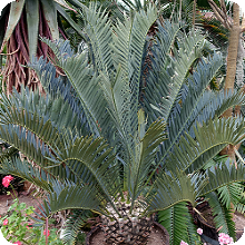 Propagation of Encephalartos trispinosus can be achieved by sowing seed or by removing well-matured suckers from the mother plant. To produce true-to-type seed it is necessary to hand-pollinate the female cone with pollen harvested from a male cone of the same species. Germination ranges from 30-40%, on average. The seed is sown in spring on a bed of clean coarse sand which has bottom heat of 25-28°C. Within two months the seed germinates, producing a radicle followed by the leaves and 10 months later the seedlings are large enough to be removed and potted into 3-litre plastic sleeves, using a well-drained growing medium. The seedlings are watered sparingly until established.