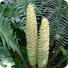 This species produces 1 to 4 cones on the female plants. The male cones are lemon-yellow, 600-700 x 120-150 mm, and can bear up to 5 cones. When mature, the male cone exudes an unpleasant odour. The female cone is a deep yellow, 300-500 x 200-250 mm.